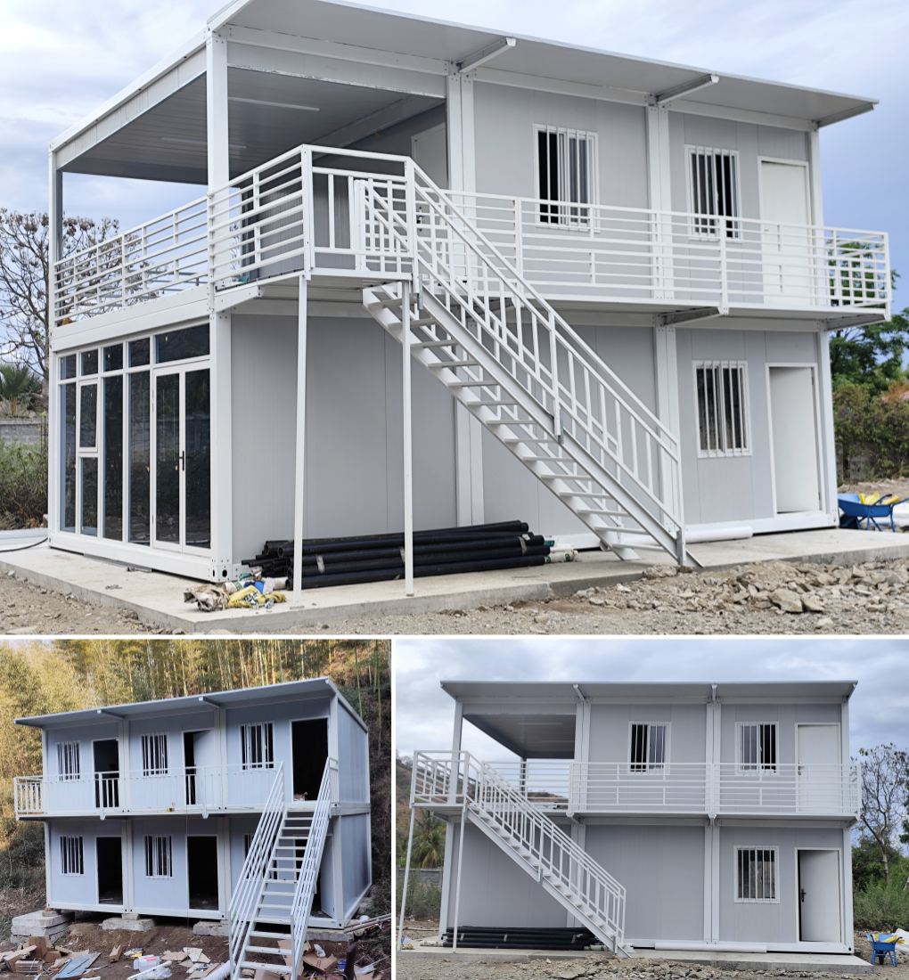 TOPINDUS recently completed a Customized Detachable Container House with Staircase project for a client in Indonesia, featuring two independent double-storey housing solutions designed to adapt to different terrains and functional requirements. This project fully demonstrates the flexibility, modularity, and practicality of detachable container houses in real-world applications.