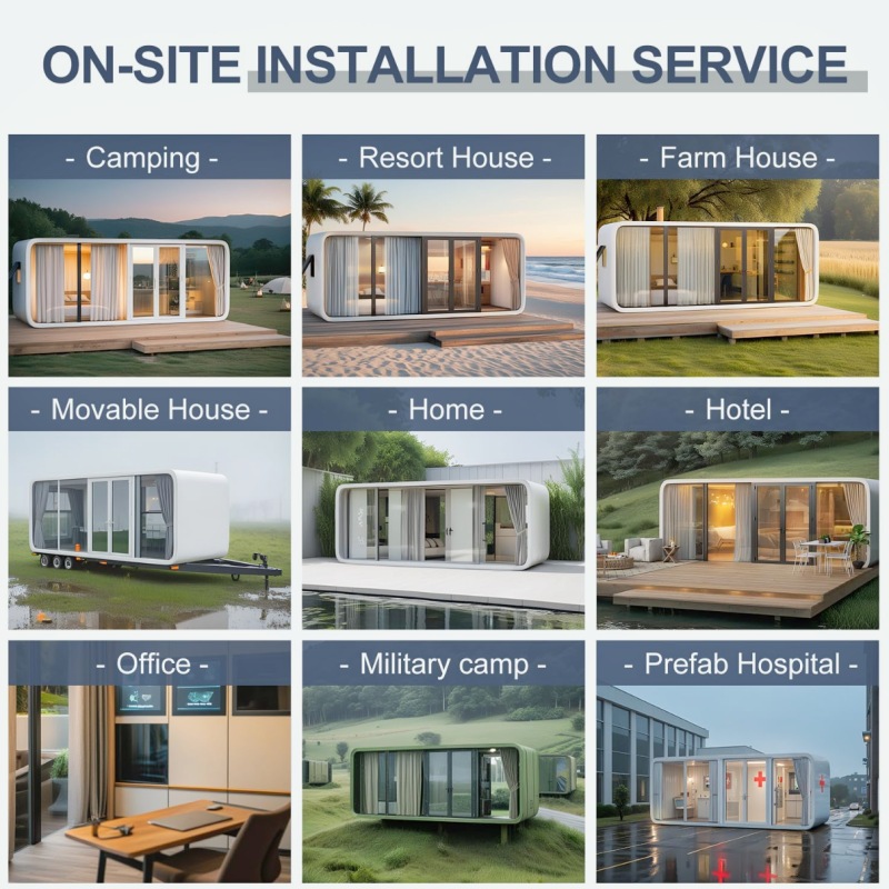 Apple Cabin House is a compact, stylish, and prefabricated modular home inspired by the sleek design of Apple products. It features a minimalist aesthetic, smooth lines, and modern functionality. Built with high-quality materials, it offers excellent insulation, durability, and energy efficiency. Ideal for use as a vacation home, office, or guest room, the Apple Cabin House combines innovation and comfort in a portable, eco-friendly living space.