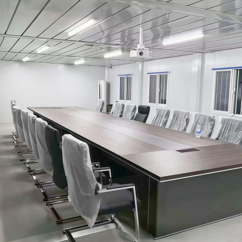Wall panel: rock wool/glass wool color steel plate.Fire rating: Class A; Water-proof rating: Class A Floor: PVC+glass magnesium board or PVC+cement.It has very good hardness, and it is also a fireproof and Water-proof material