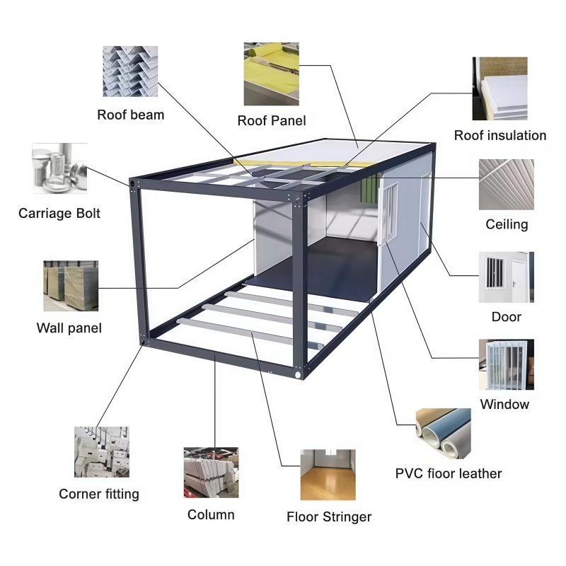 Each container house includes sockets, doors and windows, locks, and complete wiring. We can also provide different sockets according to different countries. The style of doors and windows can also be selected.